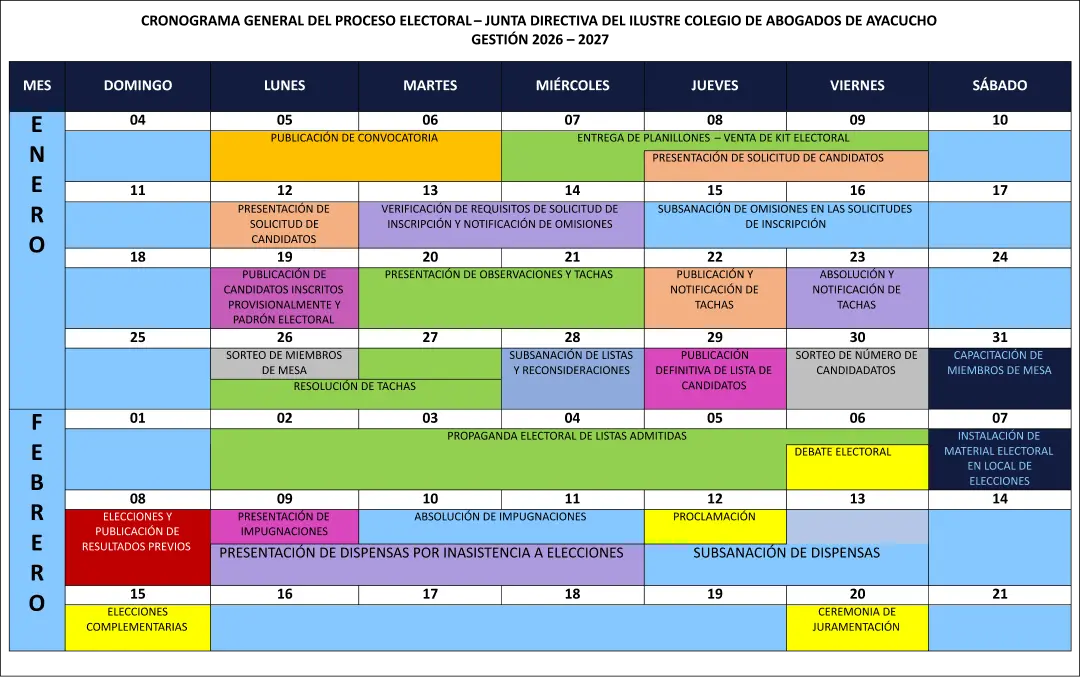 Consulta el cronograma electoral y la lista de abogados habilitados para votar, conforme al Estatuto Institucional aprobado y vigente desde 2022. Se consideran habilitados los agremiados al día hasta el 31 de diciembre de 2025 y los colegiados hasta el 30 de noviembre de 2025.